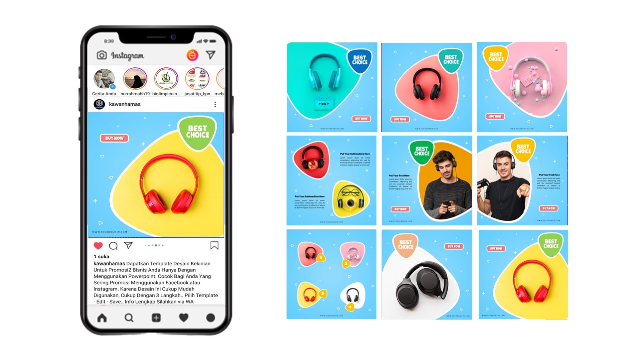 Tidak hanya banyak dan lengkap, tetapi semua template ini dibuat dengan menarik dan eye-catching, untuk menjadi stopping power bagi pengunjung Instagram anda.