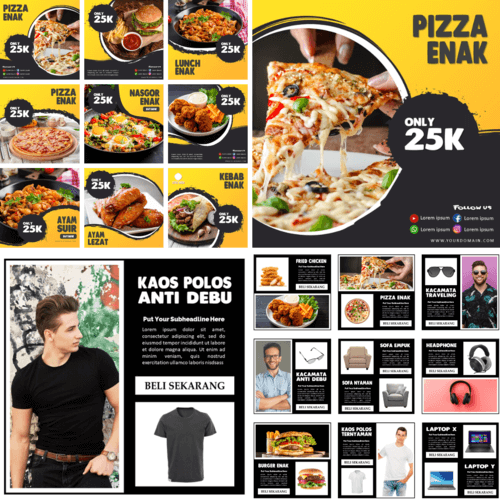 Ratusan template yang sudah kami desain khusus untuk menangani seluruh kebutuhan promosi produk anda dengan resolusi tinggi yang sangat mudah di edit sesuai yang anda inginkan menggunakan Powerpoint saja.