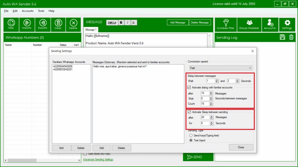 Anda tidak perlu lagi menggunakan cara manual untuk mengirimkan pesan ke ratusan kontak database Whatsapp anda. Karena cukup sekali klik, pesan anda akan tersampaikan. Hemat waktu dan kinerja anda.